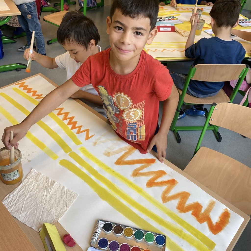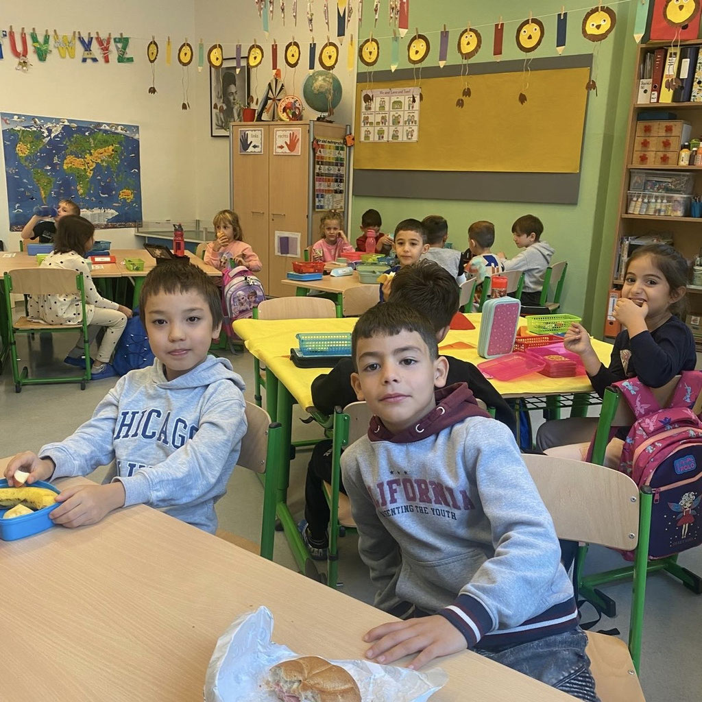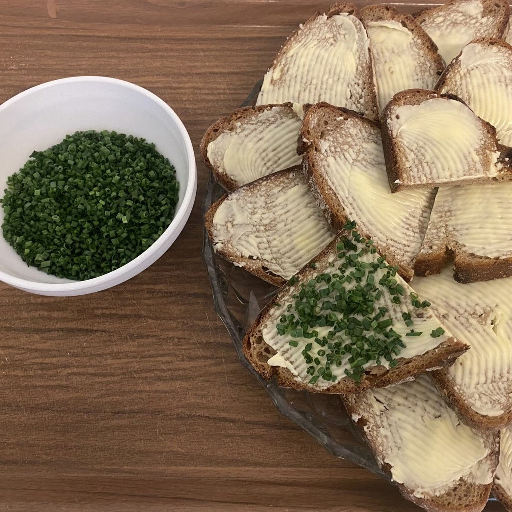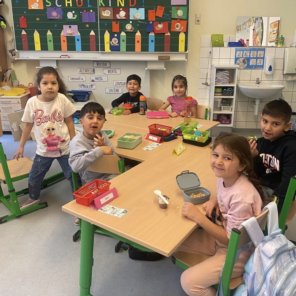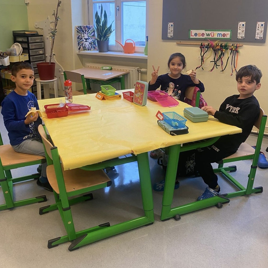 Unsere ersten Schultage waren sehr aufregend: Wir haben gemalt, und wir haben viel gelernt. Und wir waren auch schon sehr hungrig: Brote mit Schnittlauch schmecken gut!