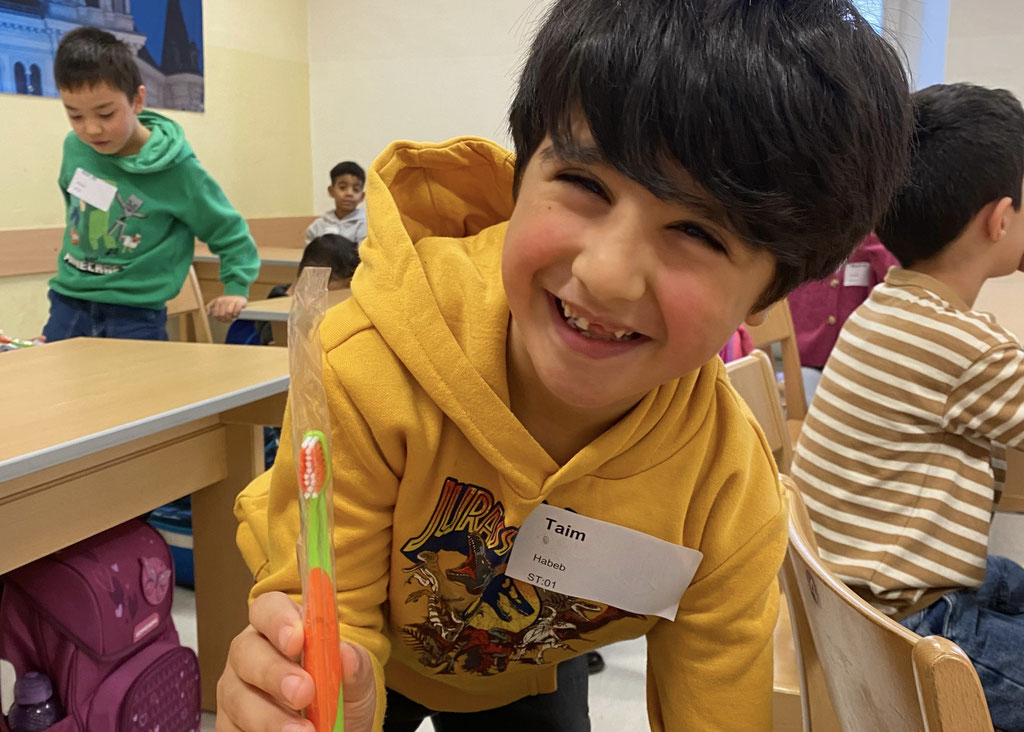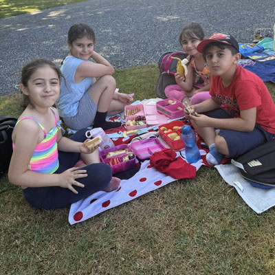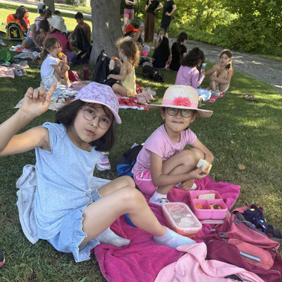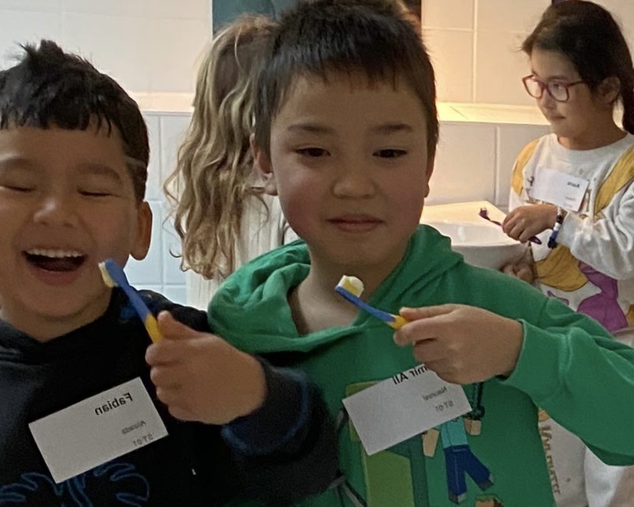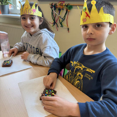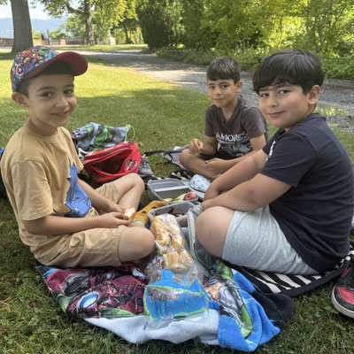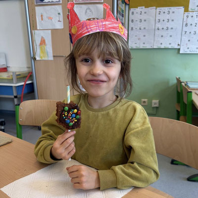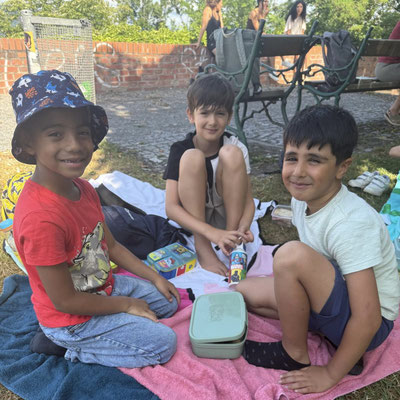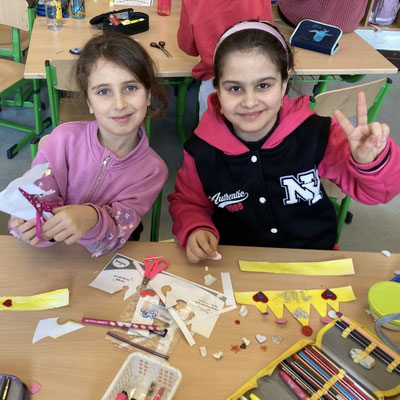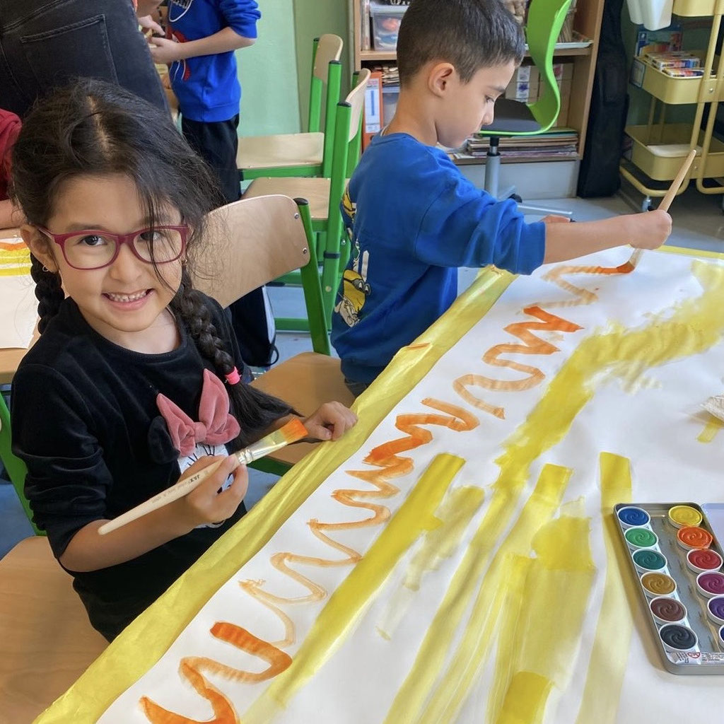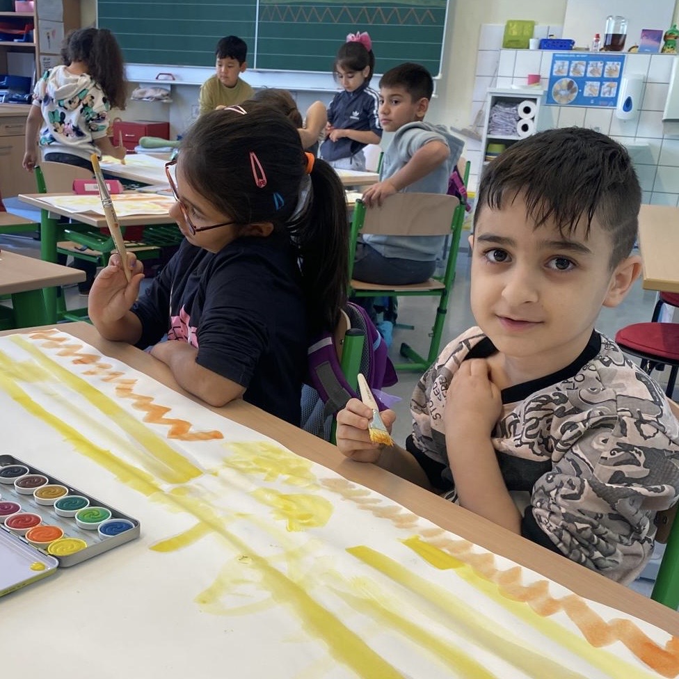 Unsere ersten Schultage waren sehr aufregend: Wir haben gemalt, und wir haben viel gelernt. Und wir waren auch schon sehr hungrig: Brote mit Schnittlauch schmecken gut!