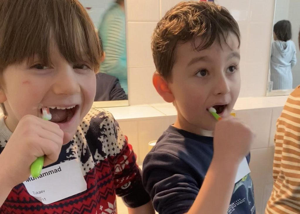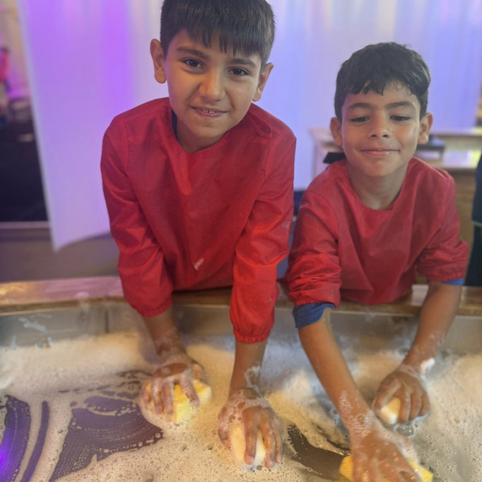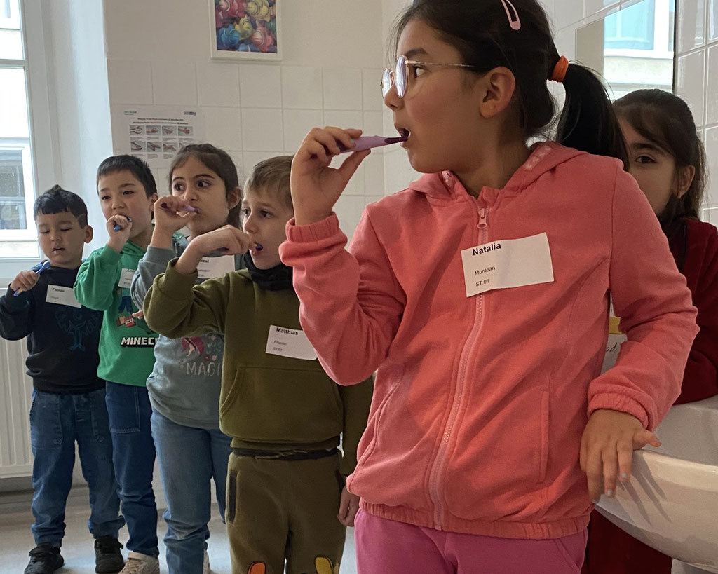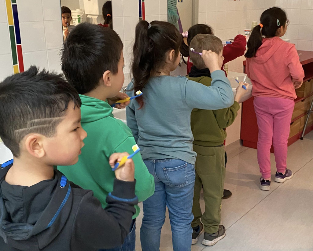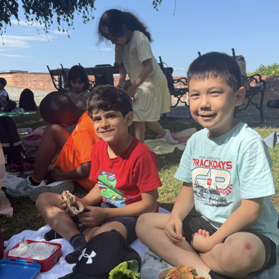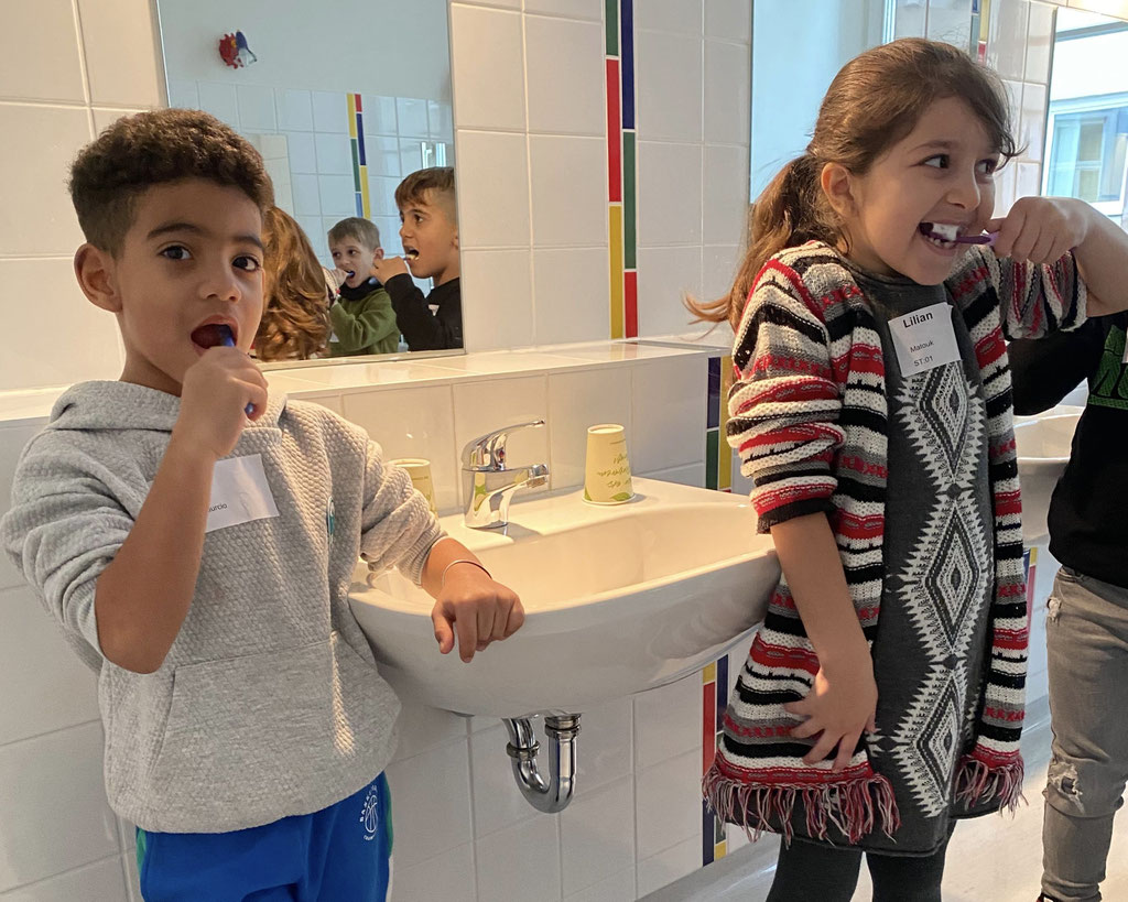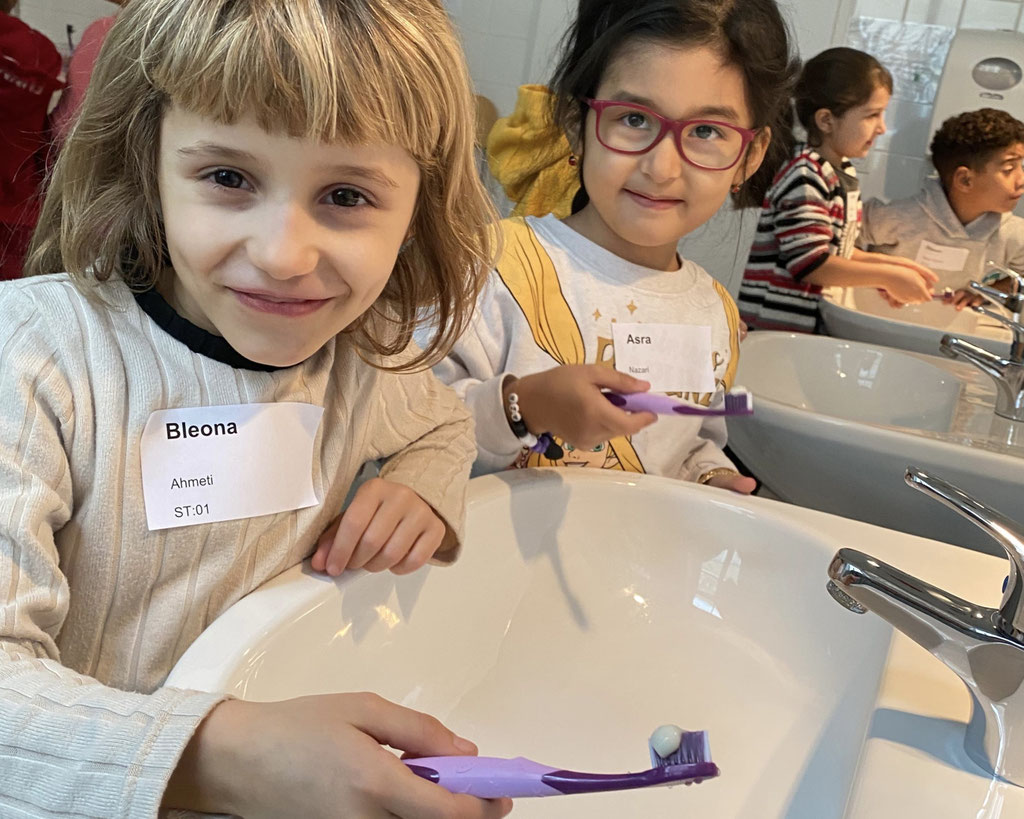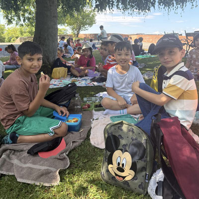 Unsere ersten Schultage waren sehr aufregend: Wir haben gemalt, und wir haben viel gelernt. Und wir waren auch schon sehr hungrig: Brote mit Schnittlauch schmecken gut!