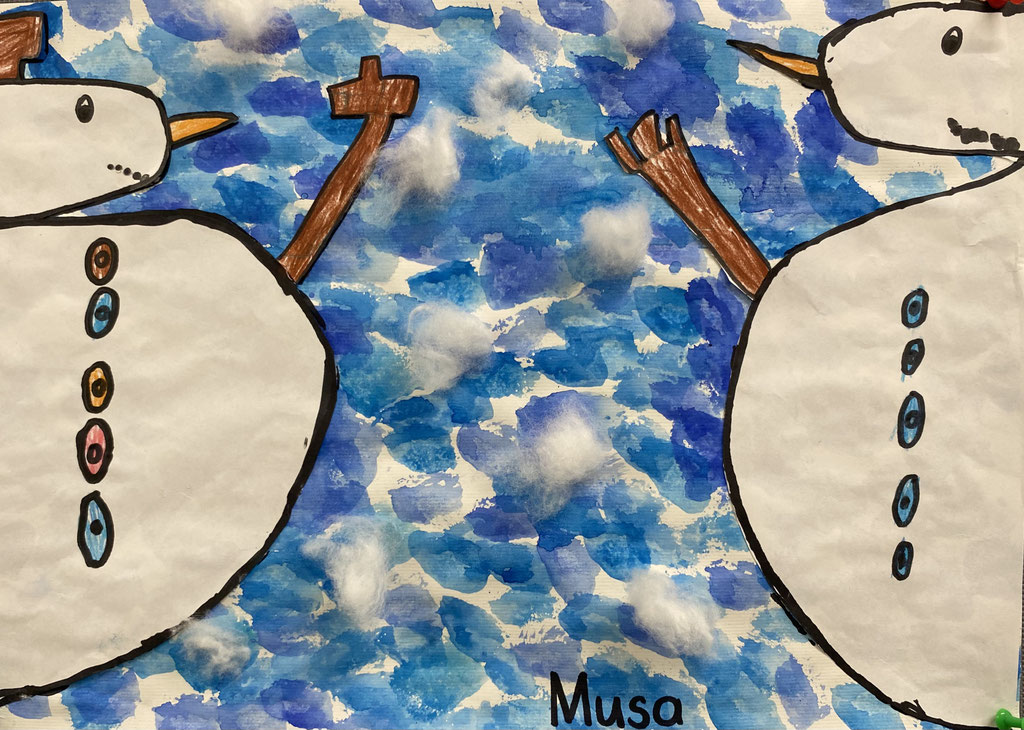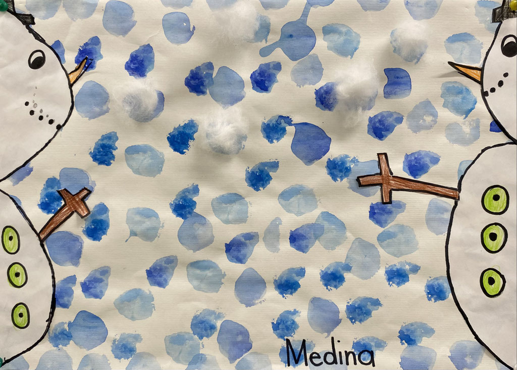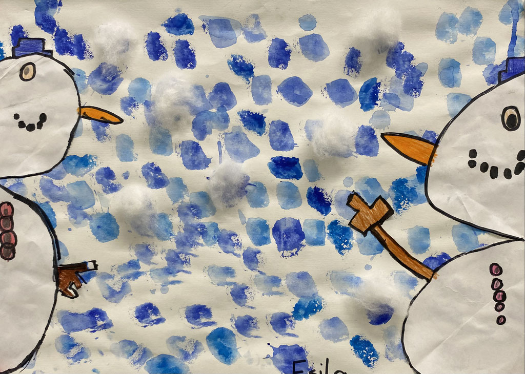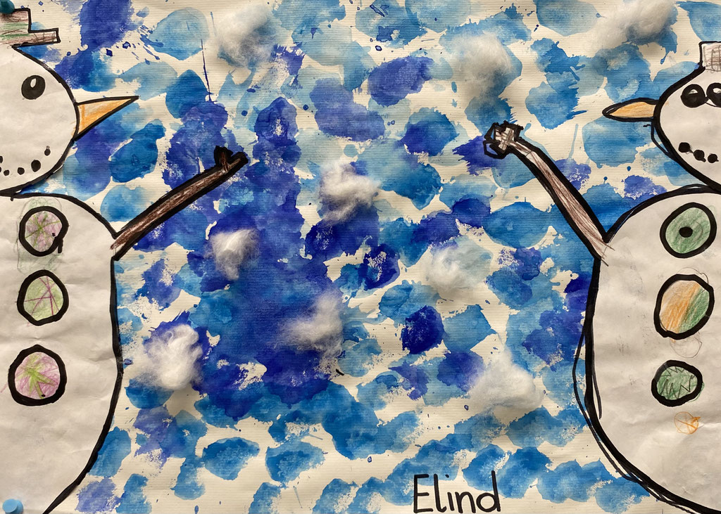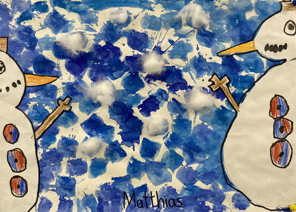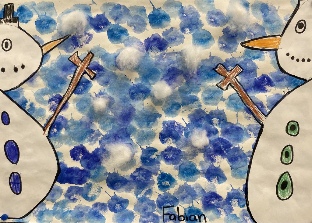 Schneemann, Schneemann, kalter Mann - hast eine orange Nase dran. Schwarze Augen, schwarzer Mund, und dein Bauch ist kugelrund. Kommt jedoch der Sonnenschein, du wirst dann geschmolzen sein.