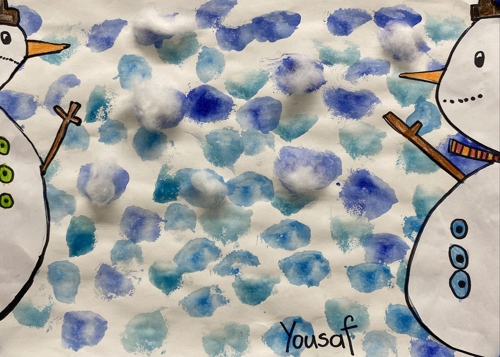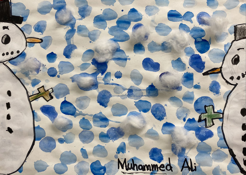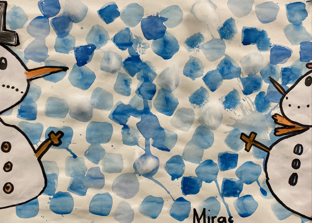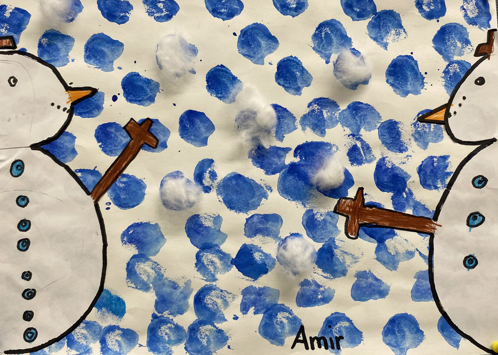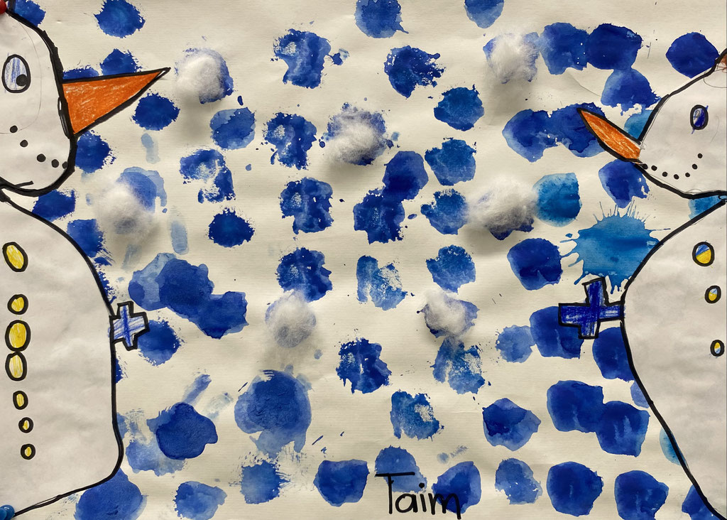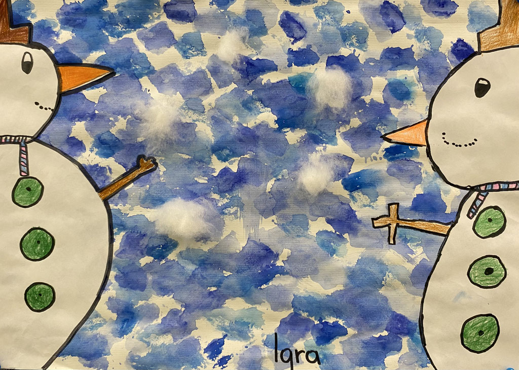 Schneemann, Schneemann, kalter Mann - hast eine orange Nase dran. Schwarze Augen, schwarzer Mund, und dein Bauch ist kugelrund. Kommt jedoch der Sonnenschein, du wirst dann geschmolzen sein.