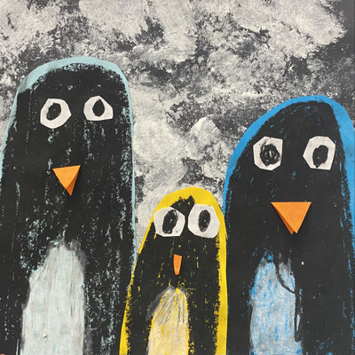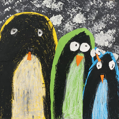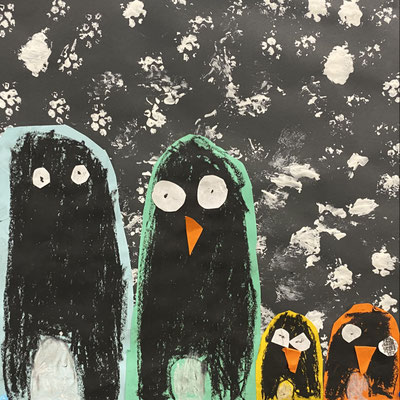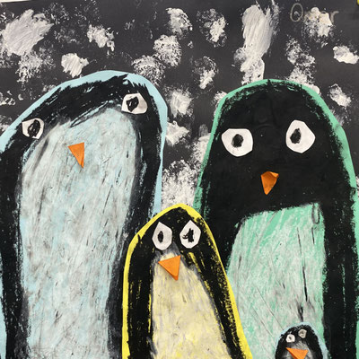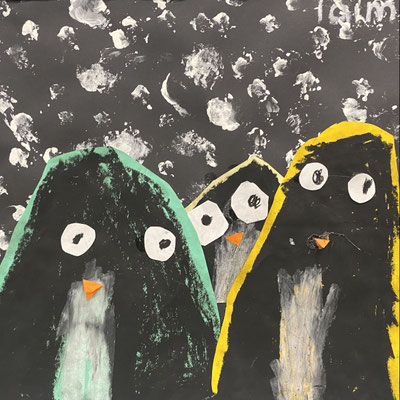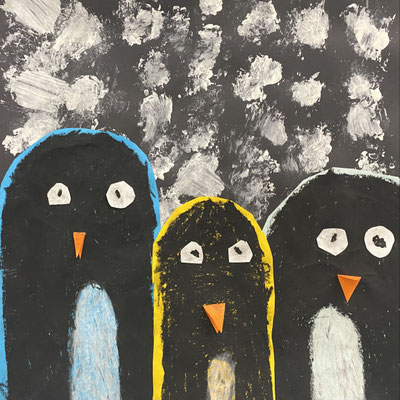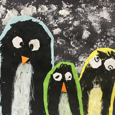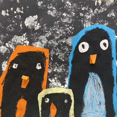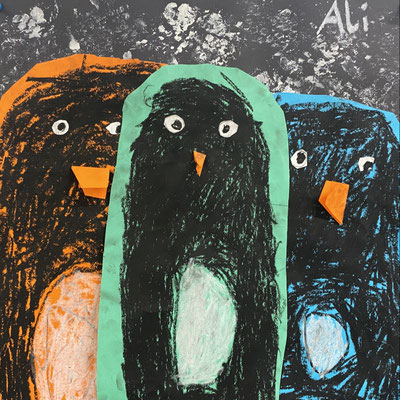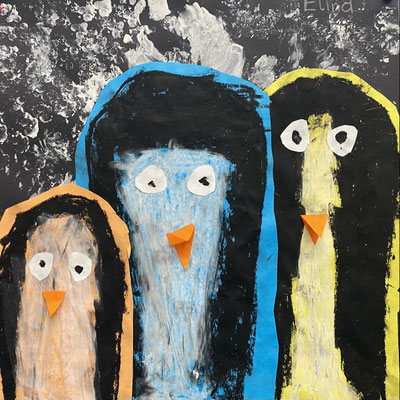 101 Pinguine watscheln durch unsere Klassen. 50 Pinguine watscheln in die 1a und 50 Pinguine watscheln in die 1b. Aber da fehlt doch noch einer! Hat er sich vielleicht bei der Frau Direktorin versteckt?