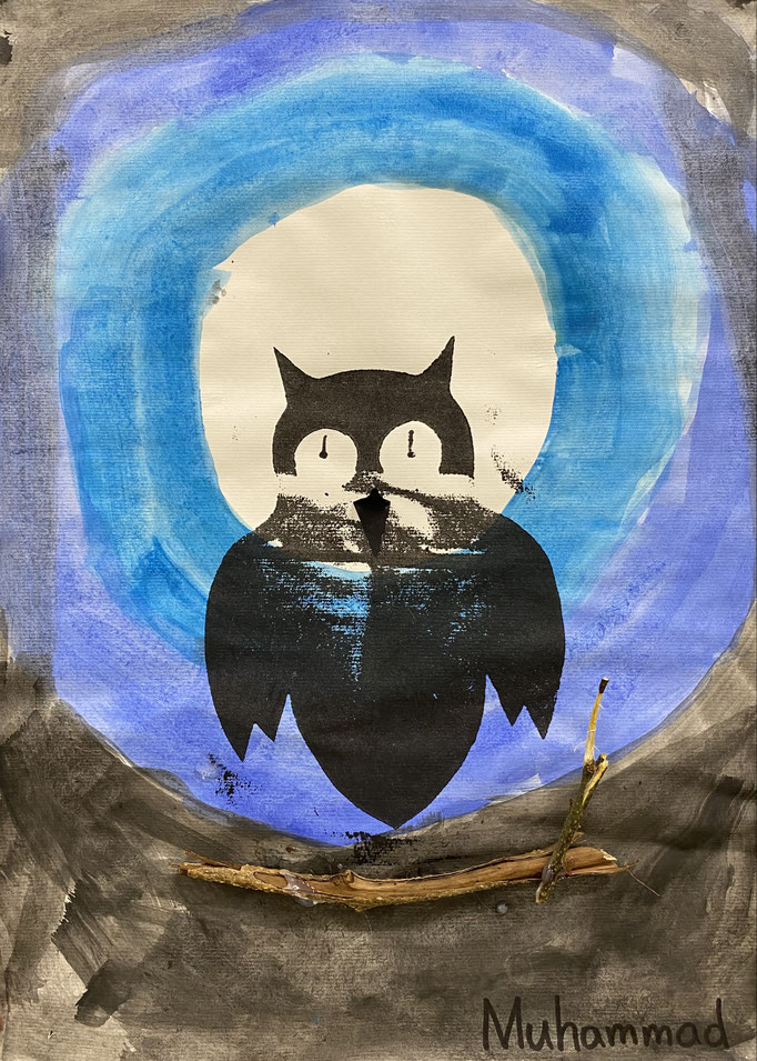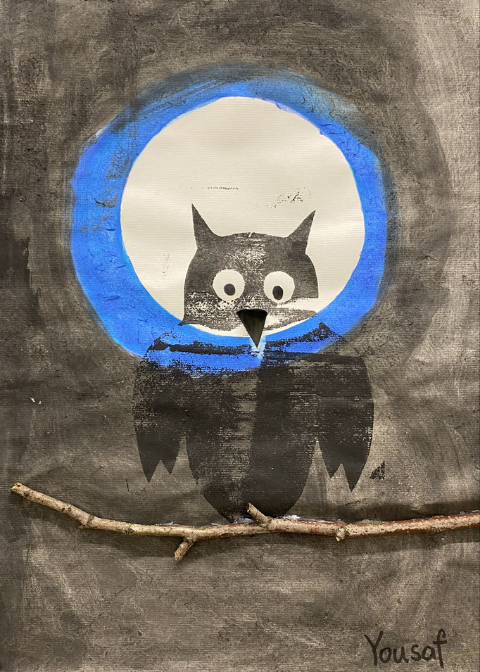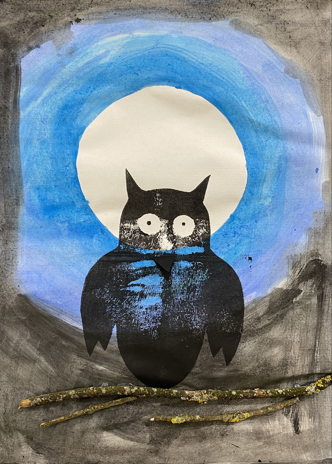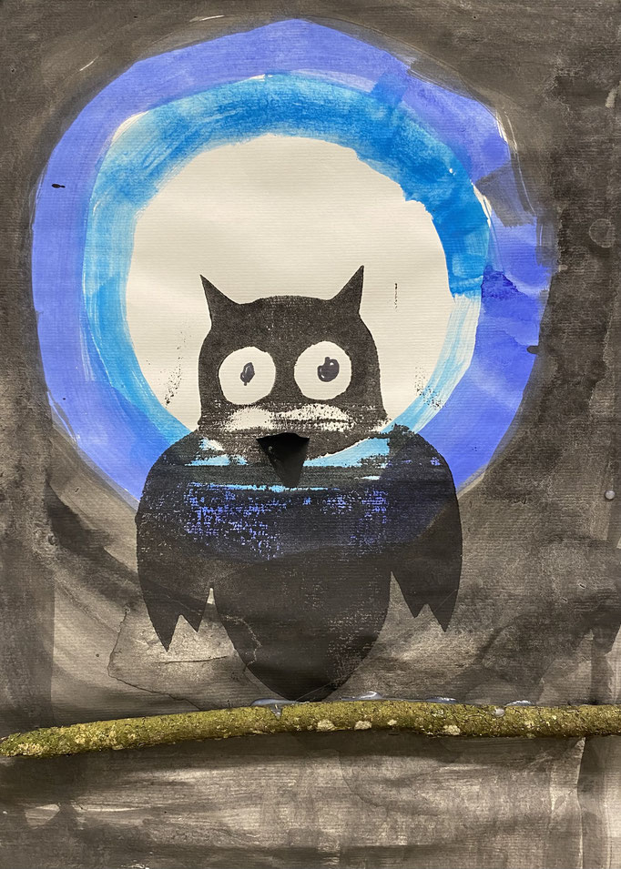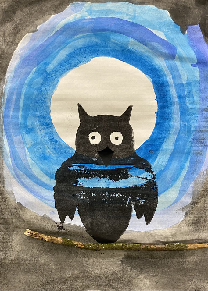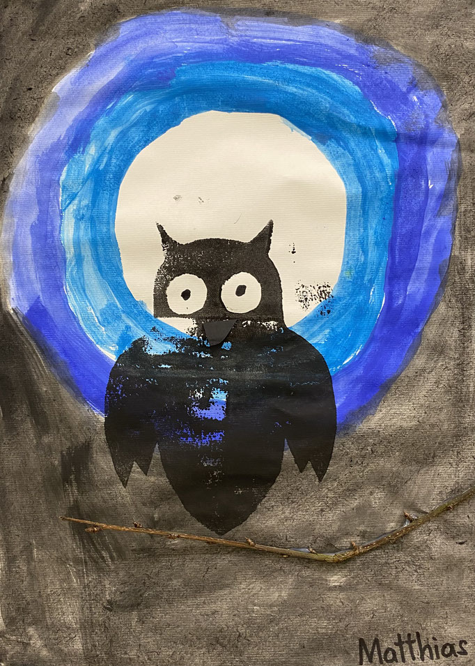 Was leuchtet heute in der Nacht so hell? Das muss der Vollmond sein. Eulen lieben den Vollmond. Dann können sie im Dunkeln ihre Beute besonders gut erkennen!