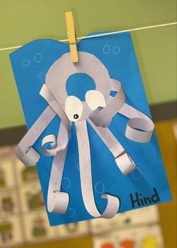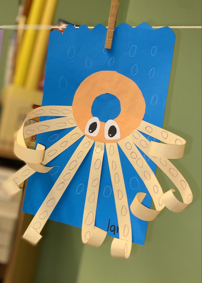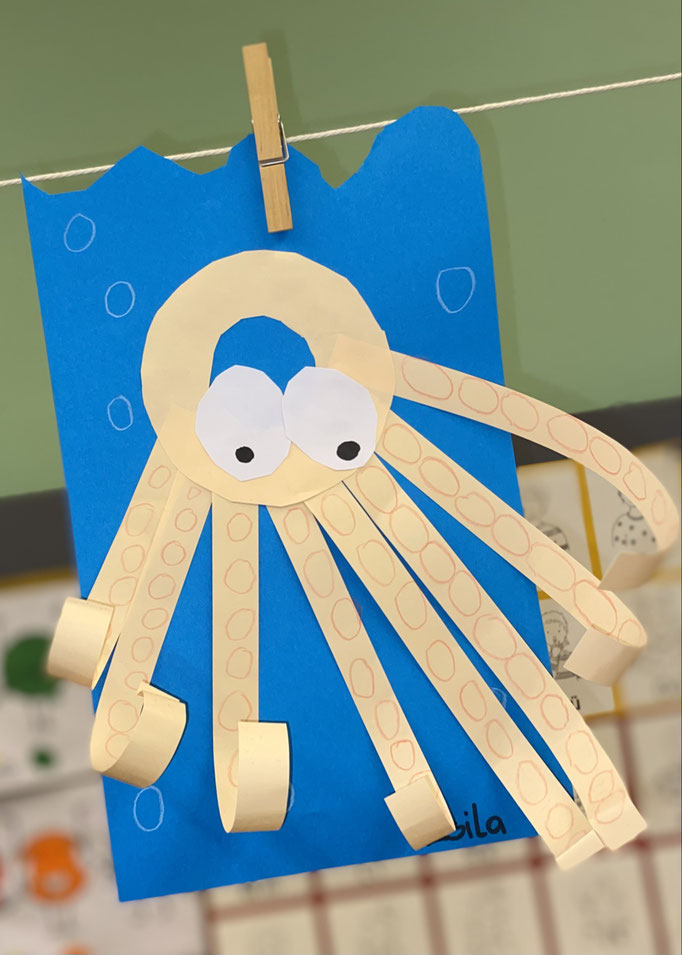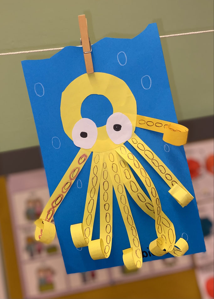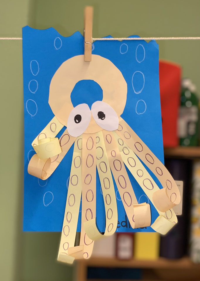 Der Buchstabe O sieht aus wie ein Ring. Oder wie der Kopf von einem Oktopus. Der hat viele Arme und lebt in einem Ozean. Oktopus und Ozean beginnen beide mit einem O!