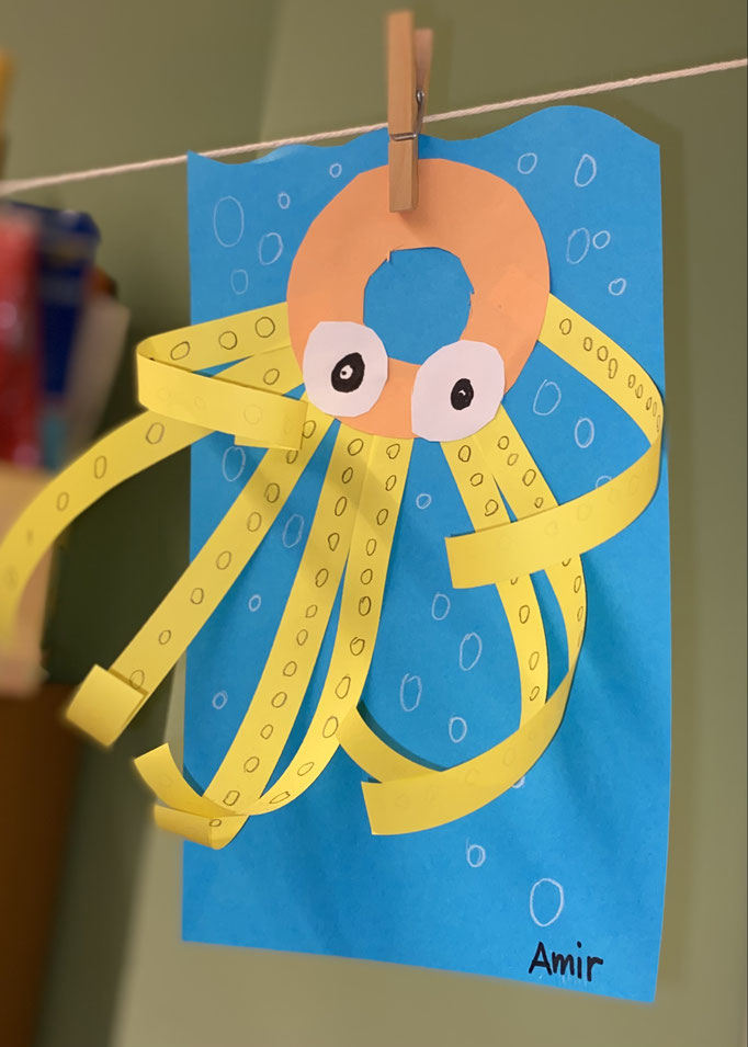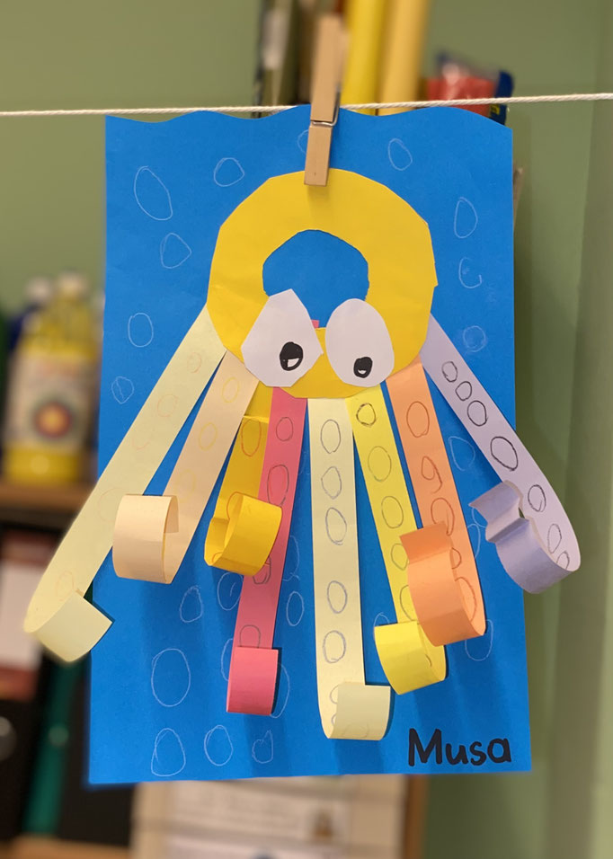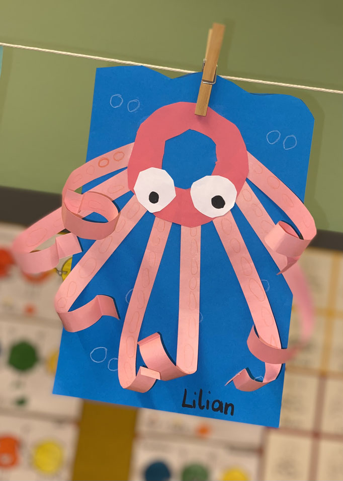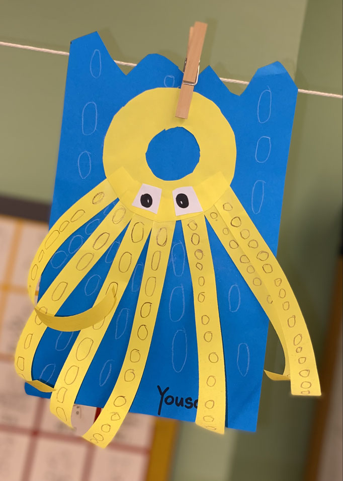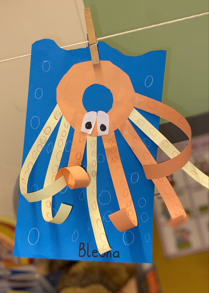 Der Buchstabe O sieht aus wie ein Ring. Oder wie der Kopf von einem Oktopus. Der hat viele Arme und lebt in einem Ozean. Oktopus und Ozean beginnen beide mit einem O!