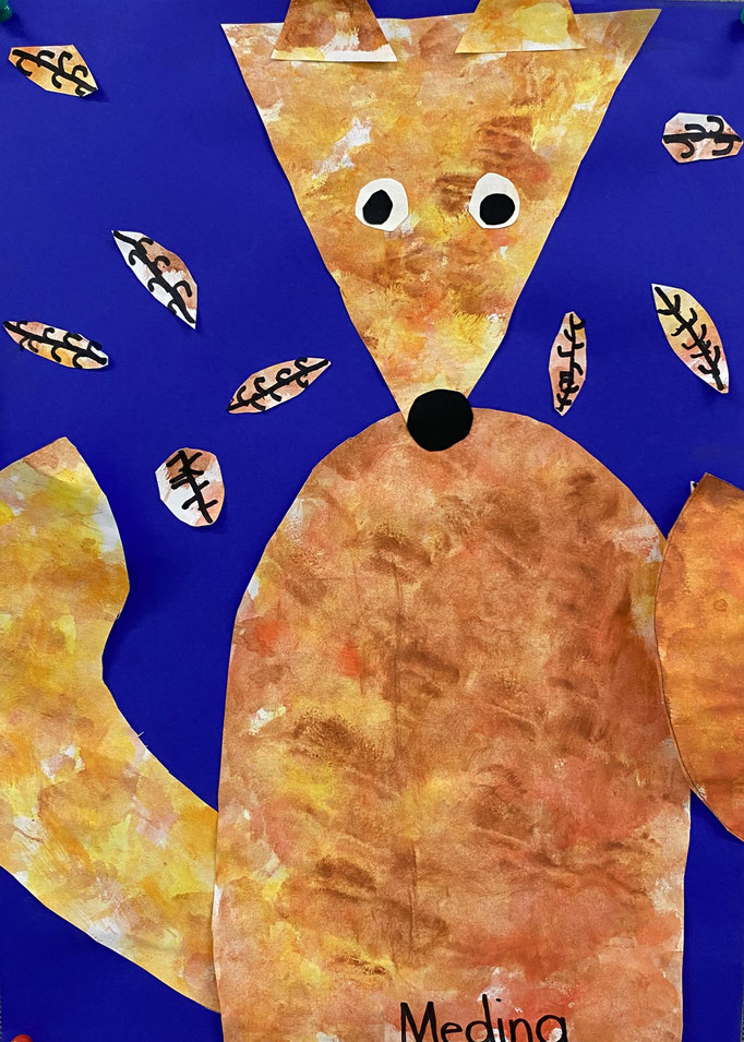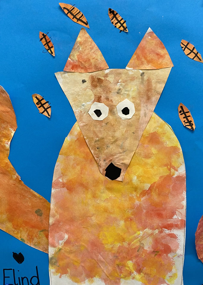 Füchse sind gescheite Tiere. Sie haben gute Ohren, damit hören sie sogar kleine Mäuse in der Ferne! Unsere Füchse haben ein oranges Fell. Sehen die schwarze Nase und die kleinen Augen nicht süß aus?