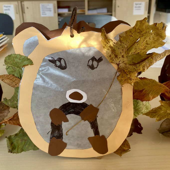 Wer schaut denn da aus dem Laub heraus? Sind das nicht liebe Igel? Sie haben süße Gesichter und kleine Pfoten. Und sie leuchten auch in der Nacht, denn diese Igel sind Laternen!