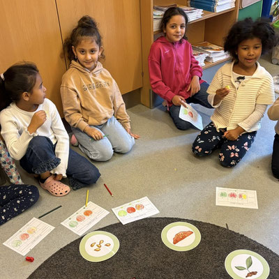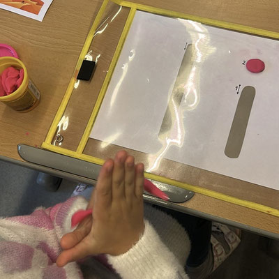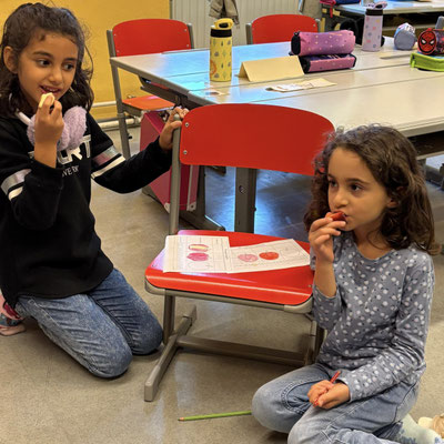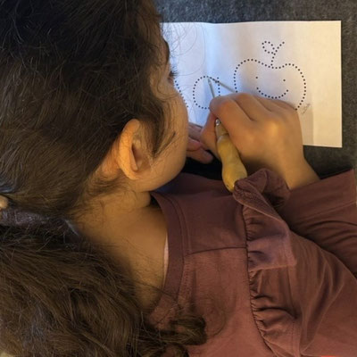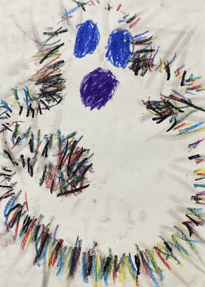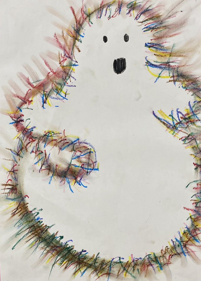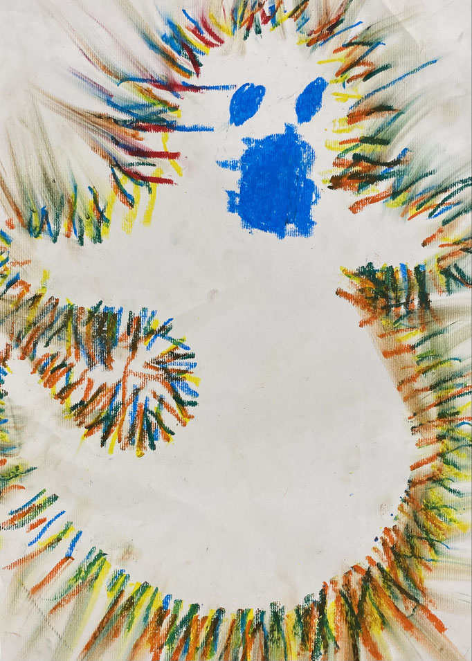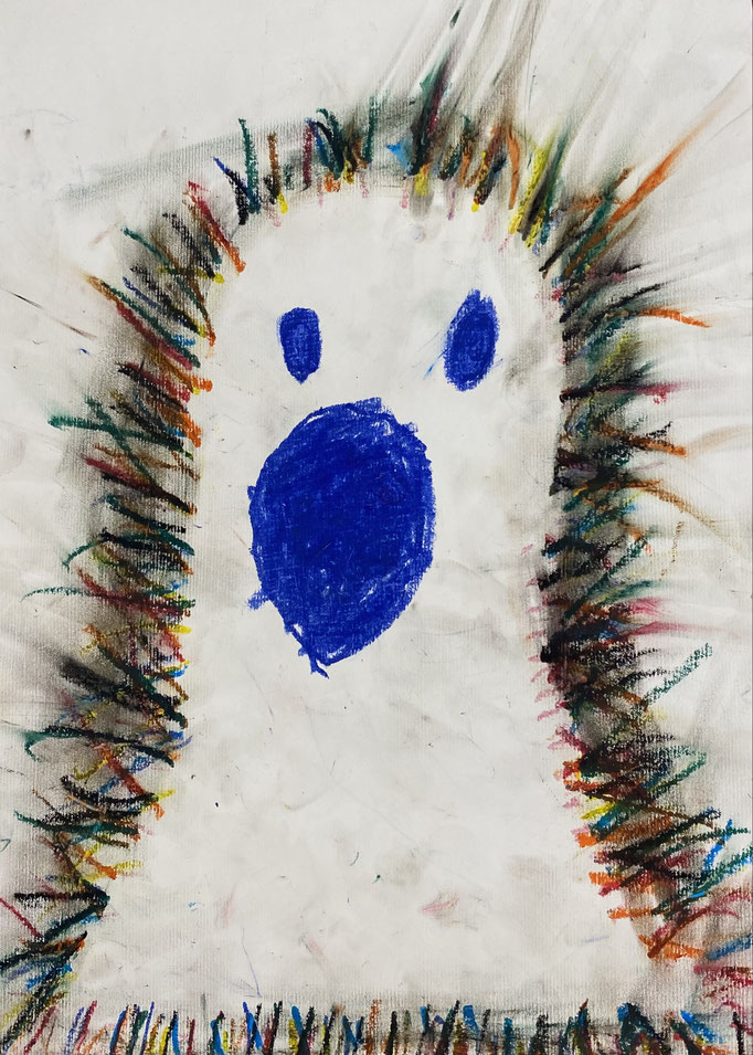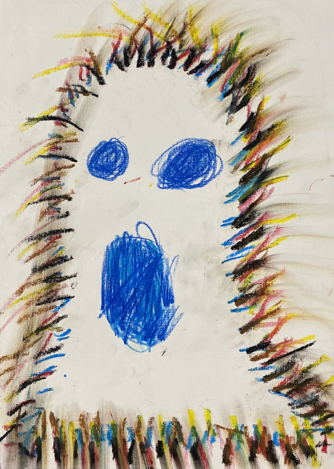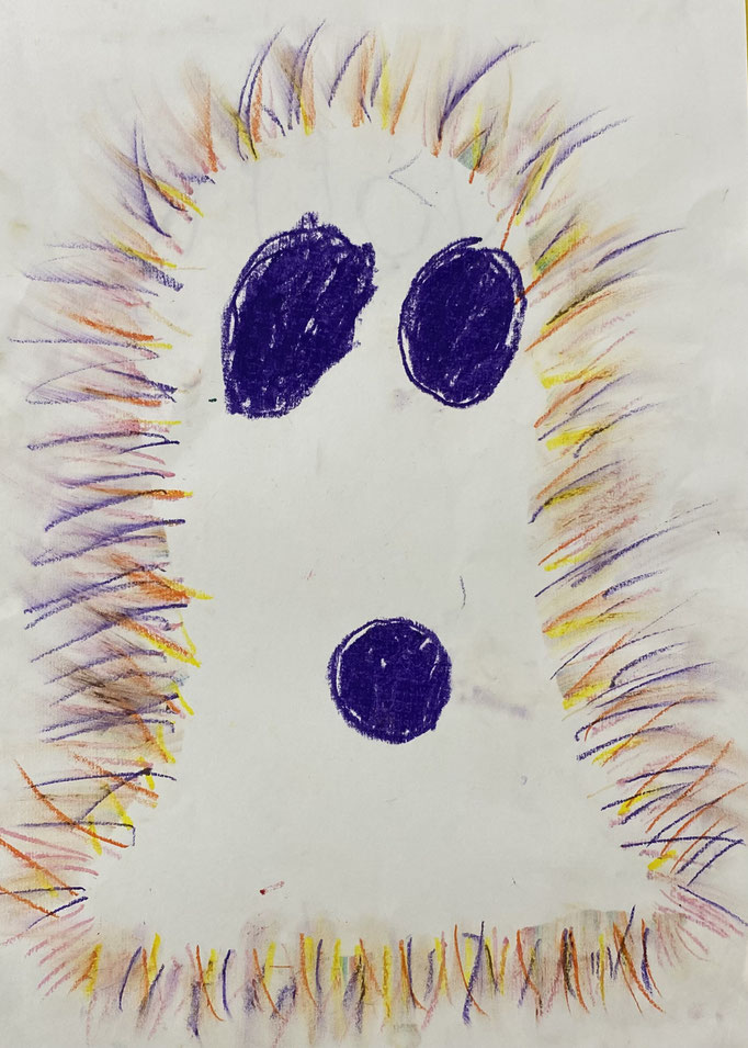 Seid mal ganz leise, dann können wir sie vielleicht hören: es geistert in der Klasse. Wir haben die Form eines Geistes auf ein Blatt gelegt und dann darüber gemalt. Nimmt man die Form wieder weg, ist auf dem Blatt ein Geist entstanden. Uuuuh!