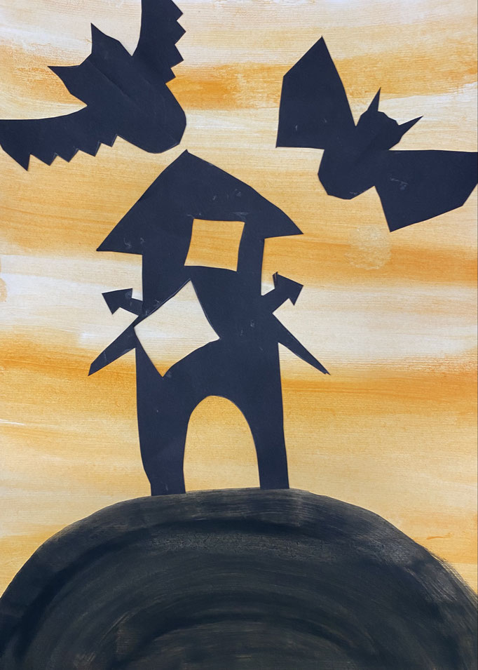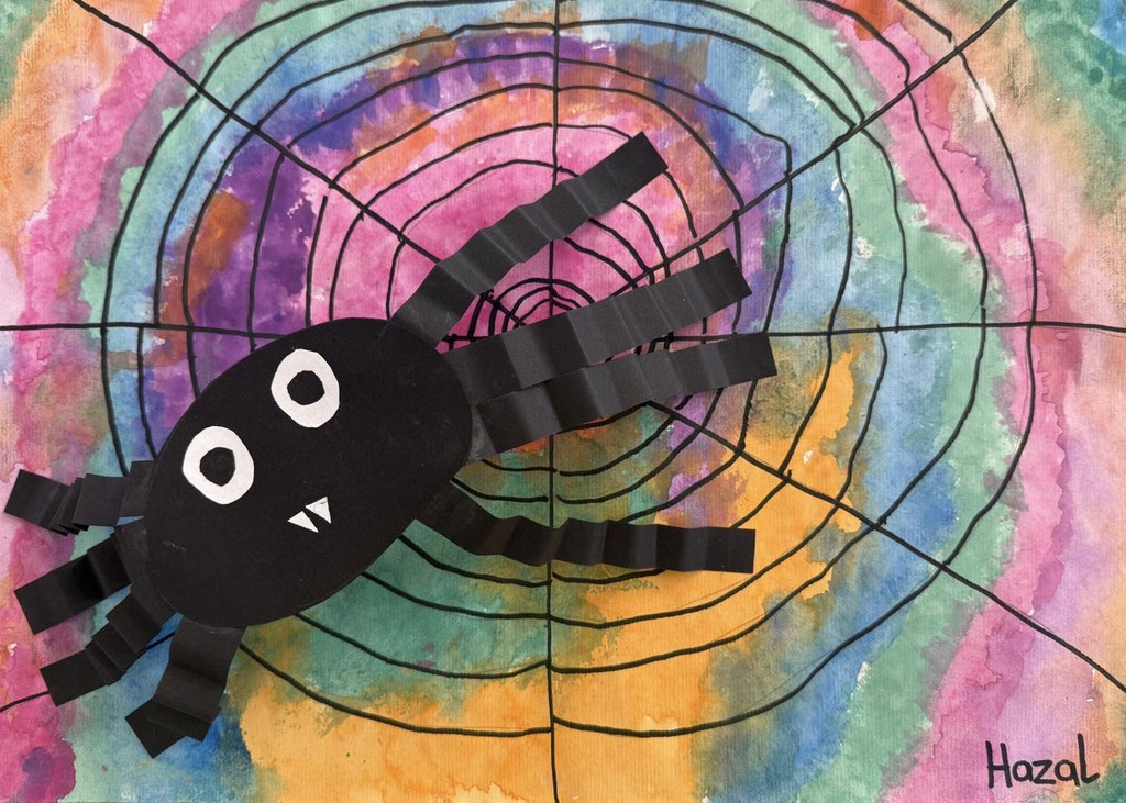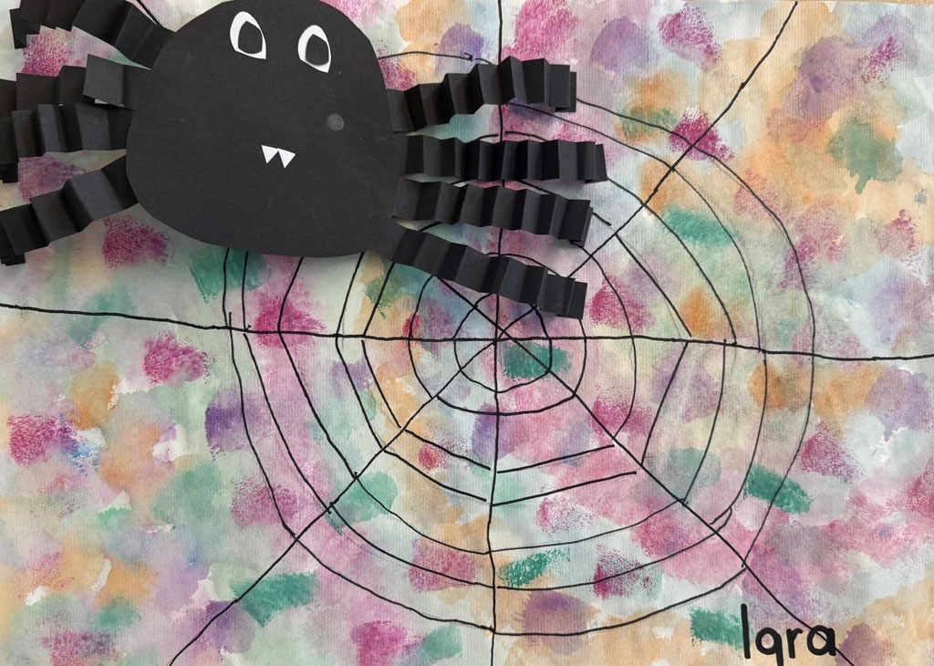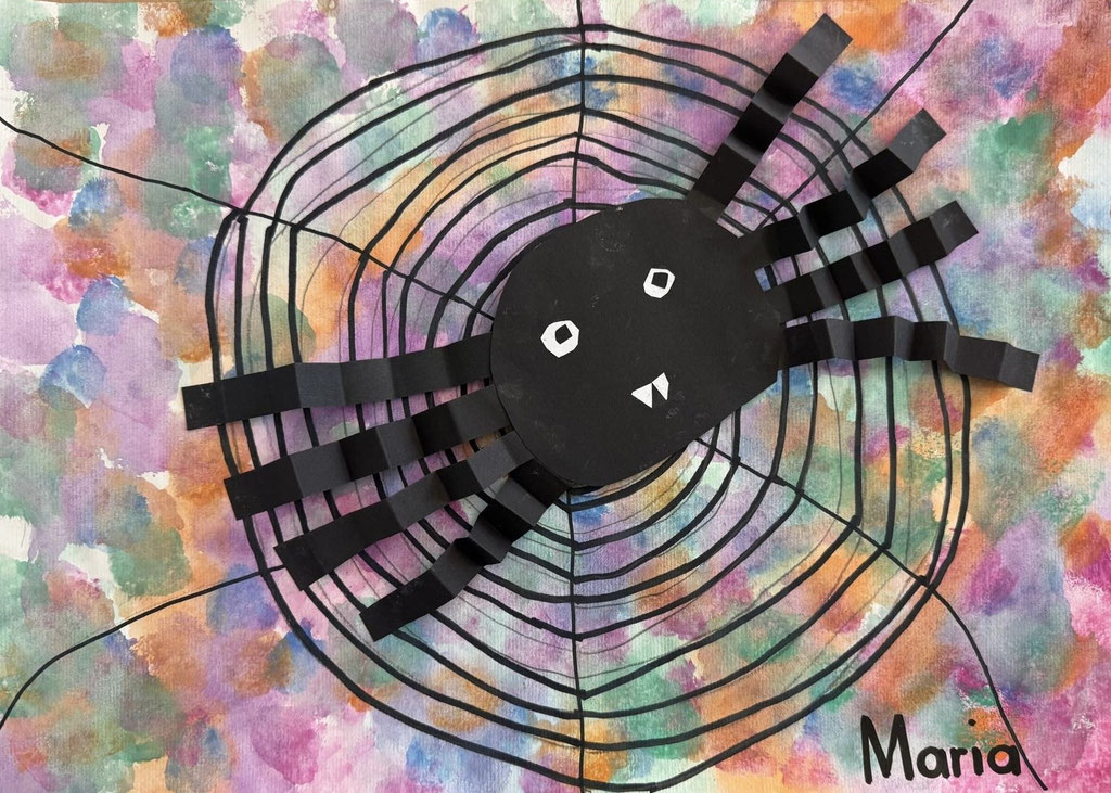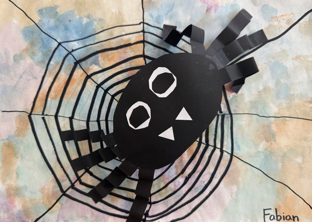 Spinnennetze spannen sich durch unsere Klasse. In den Spinnennetzen spitzen