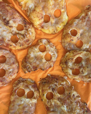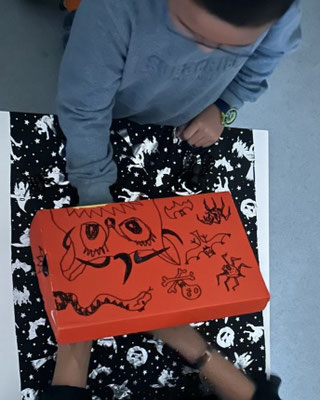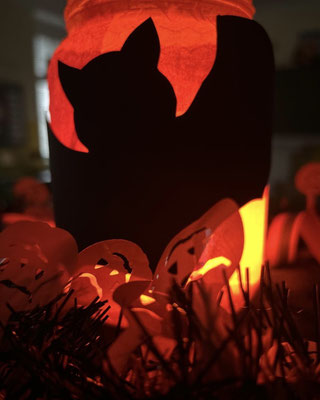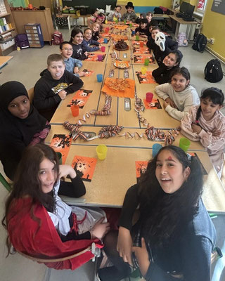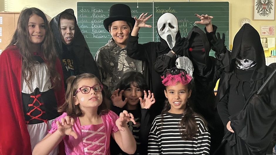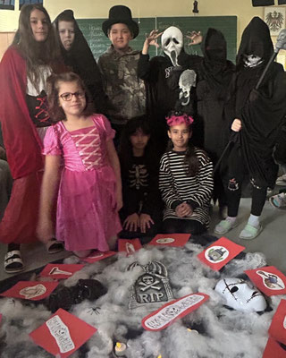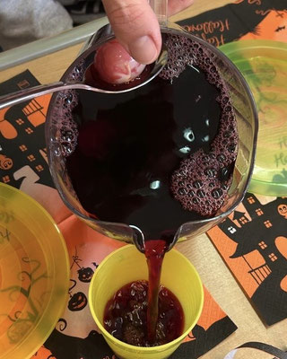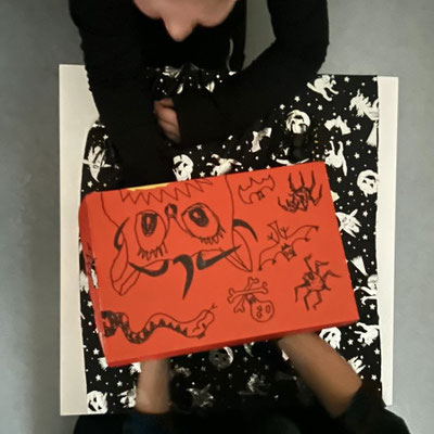 In der Gruselschachtel liegen viele geheimnisvolle, gruselig-glitschige Dinge. Wer greift als erstes hinein? Iiiiiih, das rote Getränk sieht ja aus wie Blut – es ist aber ein Beerensaft! Und die Totenköpfe sind aus einem knusprigen Pizzateig!