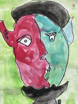 Der Künstler Pablo Picasso malte gerne Portraits von Menschen. Die sehen aber nicht so aus wie in der Wirklichkeit – sie sind abstrakte Bilder im Stil des Kubismus.