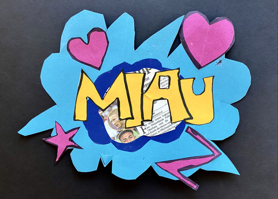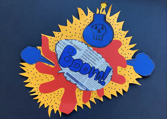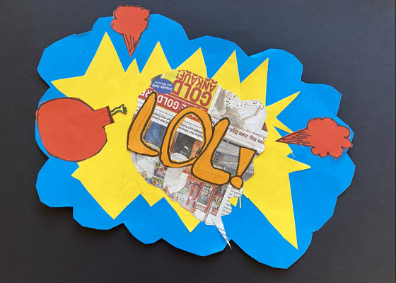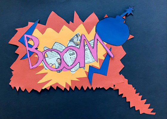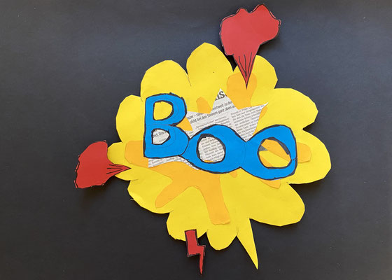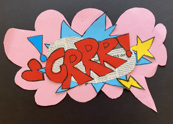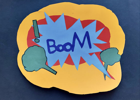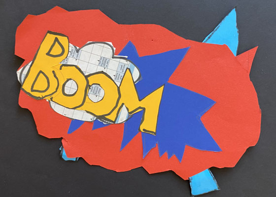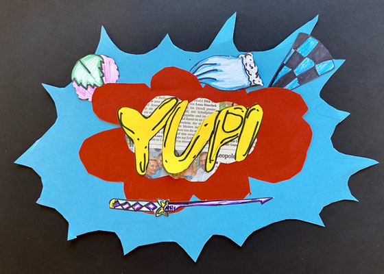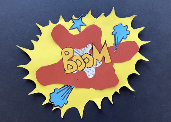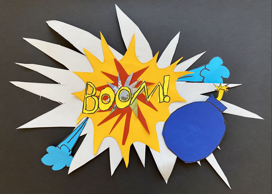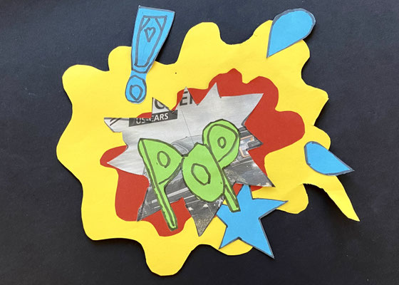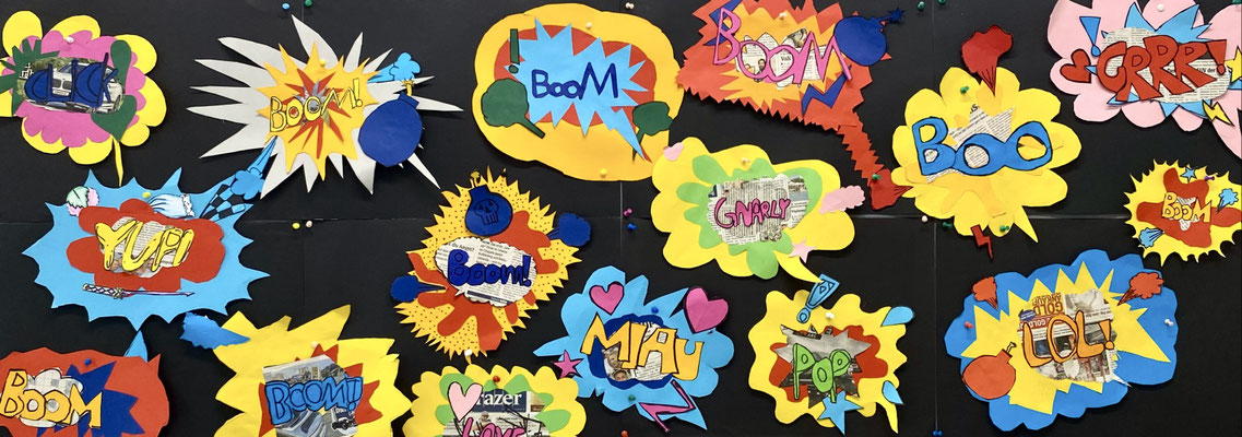 Wie die Sprechblasen eines Comics sehen unsere lustigen Kunstwerke aus. Im Popart haben Künstlerinnen und Künstler abstrakte Bilder gemalt und ganz bunte Farben verwendet. Roy Lichtenstein war ein bekannter Künstler des Popart.