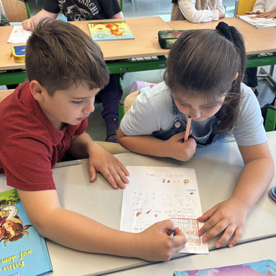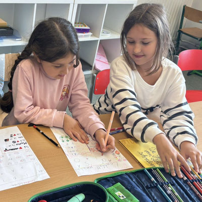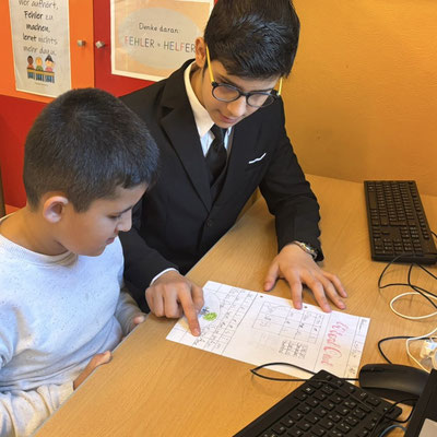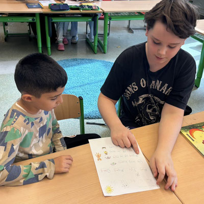 Wenn die kleinen Kinder mit den großen Kindern lernen, haben alle großen Spaß. Die 4a durfte heute Lehrerin und Lehrer sein und den Kindern der 1b alles genau erklären ...