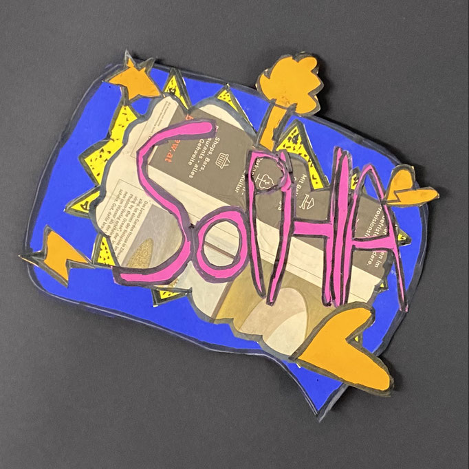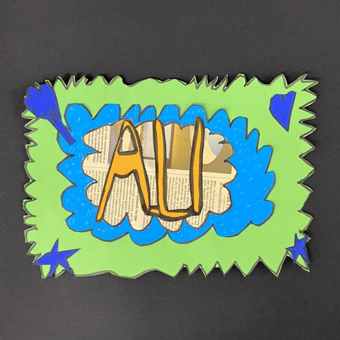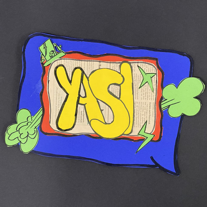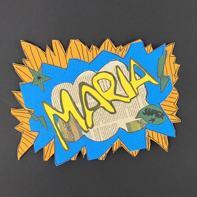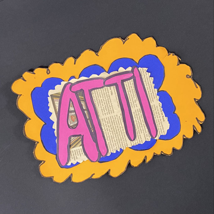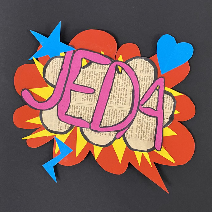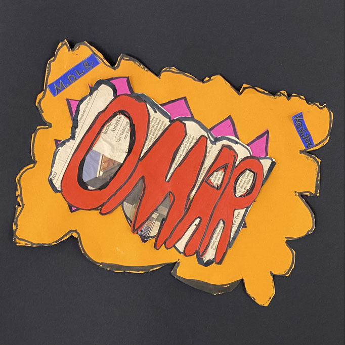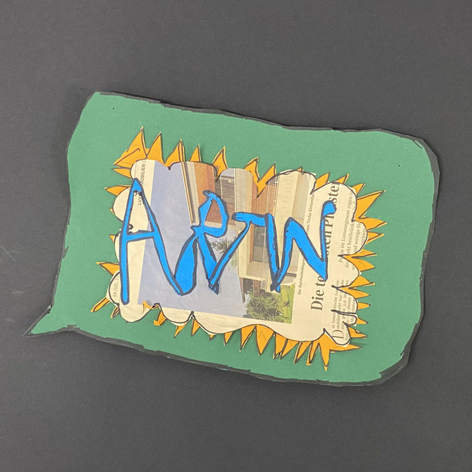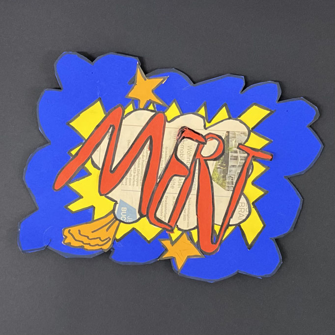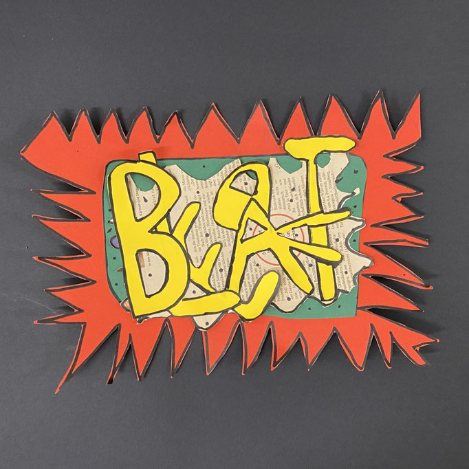 Wie die Sprechblasen eines Comics sehen unsere lustigen Kunstwerke aus. Im Popart haben Künstlerinnen und Künstler abstrakte Bilder gemalt und ganz bunte Farben verwendet. Roy Lichtenstein war ein bekannter Künstler des Popart.