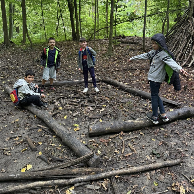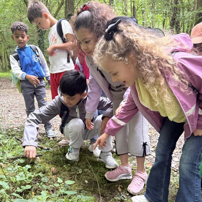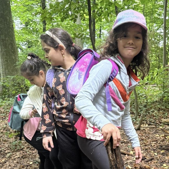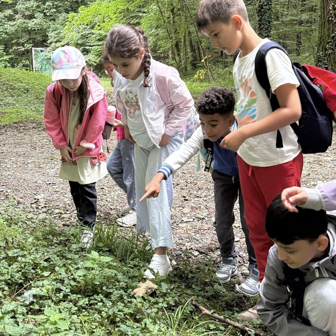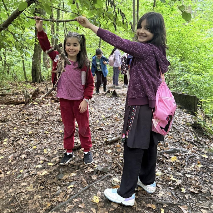 Wir sind die Löwenklasse und die Eulenklasse. Aber gibt es bei uns im Wald auch Löwen und Eulen? Im Leechwald lernen wir heute, welche Tiere in einem wirklich Wald leben.